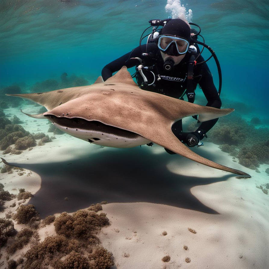 Unterwasser wird es auch gruselig. Dieses Tier gibt es so nicht. Es sollte ein Engelshai dargestellt werden.