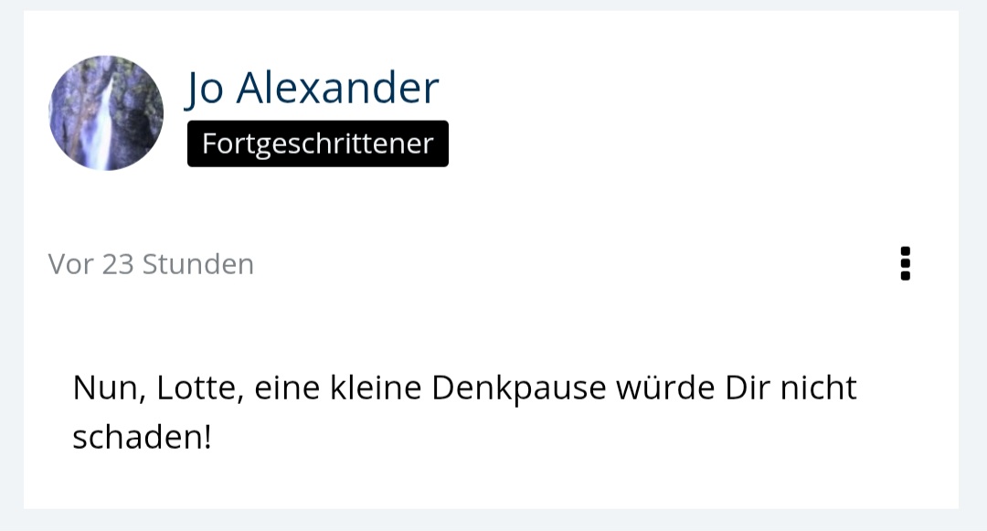 Mit Gwenhywars Kommentar kann ich umgehen, aber Nicoles Kommentar verletzt mich, wenn er so stehen bleibt